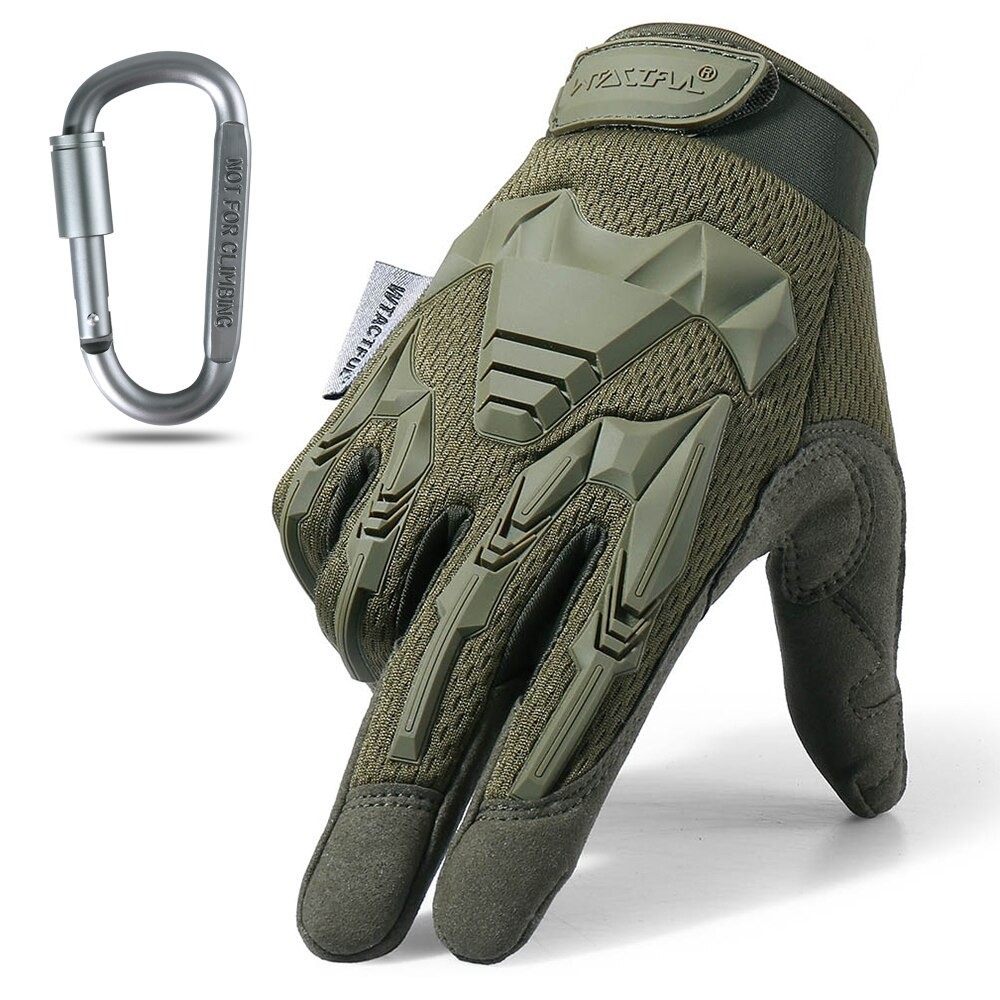 Taktiske militærhandsker   Det giver fremragende beskyttelse mod skrammer under fald . Ideel til airsoft, paintball og også til vintersport (skiløb, snowboarding). Den transporterer sved væk fra håndfladerne og beskytter fingrene mod kulde. Nem og sikker velcrolukning. Leveres med en karabinhage.