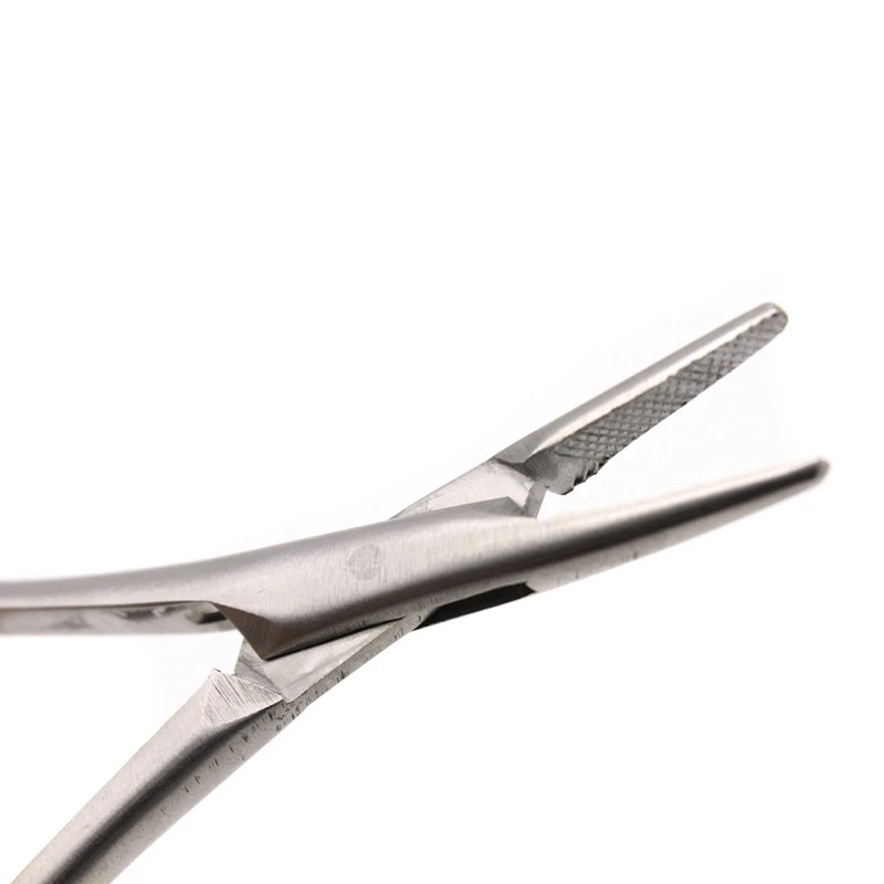 Professionelt rustfrit stål værktøj af typen Mathieu til præcis fastgørelse og håndtering af nåle ved syning og ortodontiske procedurer. Fuld beskrivelse