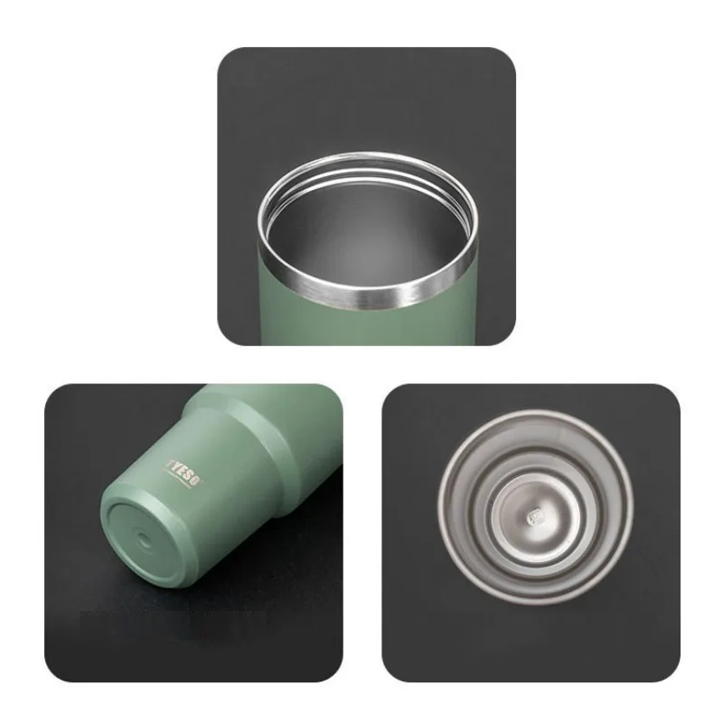 Stilfuld termoflaske med dobbelt låg, holder drikke varme og kolde, holdbart rustfrit stål 304, ideel til arbejde, skole og rejser. Fuld beskrivelse
