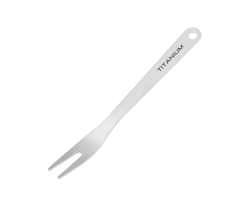 Let titaniumfrugtgaffel med en længde på 9,2 cm velegnet til camping, vandreture og rejser. Bærbart bestik i ren titanium til udendørs spisning. Fuld beskrivelse