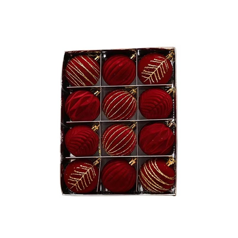Hver julekugle har en diameter på 6 cm og en størrelse på 6 x 6 x 7 cm. Seks forskellige dekorer giver træet dybde og en interessant visuel effekt, mens 12 stykker muliggør en jævn fordeling. Sættet er velegnet til pyntning af juletræet samt til dekoration af kranse, guirlander, vinduesarrangementer eller festlige borde. Takket være den klassiske form passer det ind i både traditionelle og moderne interiører.