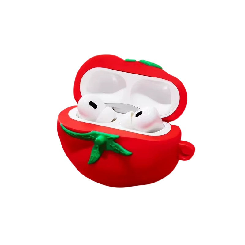 Silikone beskyttelsesetui til AirPods 1 2 med 3D tegneseriemotiv af en tomat. Dæmper stød, beskytter mod ridser og sikrer nem adgang til opladningsporten. Fuld beskrivelse