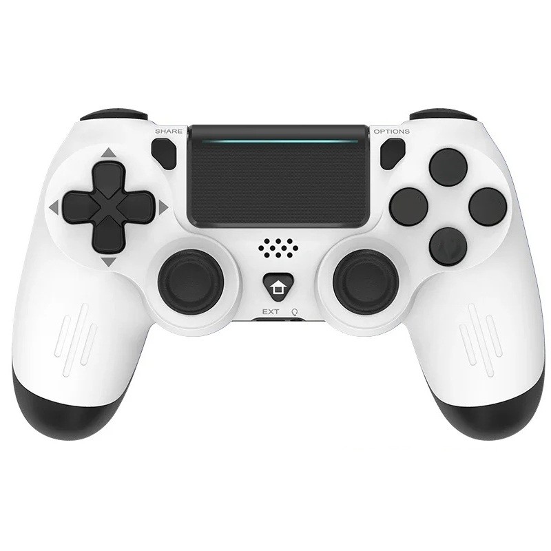 Den moderne trådløse controller er designet til problemfri gameplay på PlayStation 4, PC, Android og iOS . Den tilbyder Bluetooth-forbindelse til praktisk trådløs gaming uden kabler og fås i to farver - sort og hvid . Den er udstyret med vibrationsmotorer , en gyroskopisk sensor , en touchpad og et 3,5 mm lydstik til gaming-hovedtelefoner, hvilket gør den til et ideelt valg for enhver gamer.