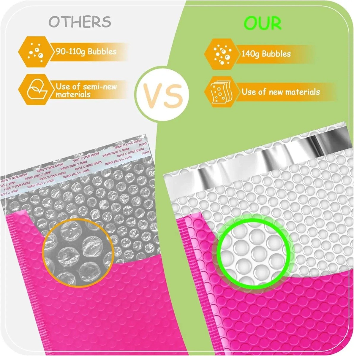Boblekuverter er et uundgåeligt supplement for enhver, der regelmæssigt sender skrøbelige eller værdifulde genstande. Med dette sæt får du kvalitetsbeskyttelse, der sikrer, at dine forsendelser ankommer i perfekt stand. Takket være de forskellige farvevarianter kan du tilpasse udseendet af kuverterne og dermed tilbyde et unikt og professionelt udseende til dine pakker. Dette sæt er det ideelle valg for e-commerce virksomheder eller enkeltpersoner, der søger en pålidelig måde at pakke på.