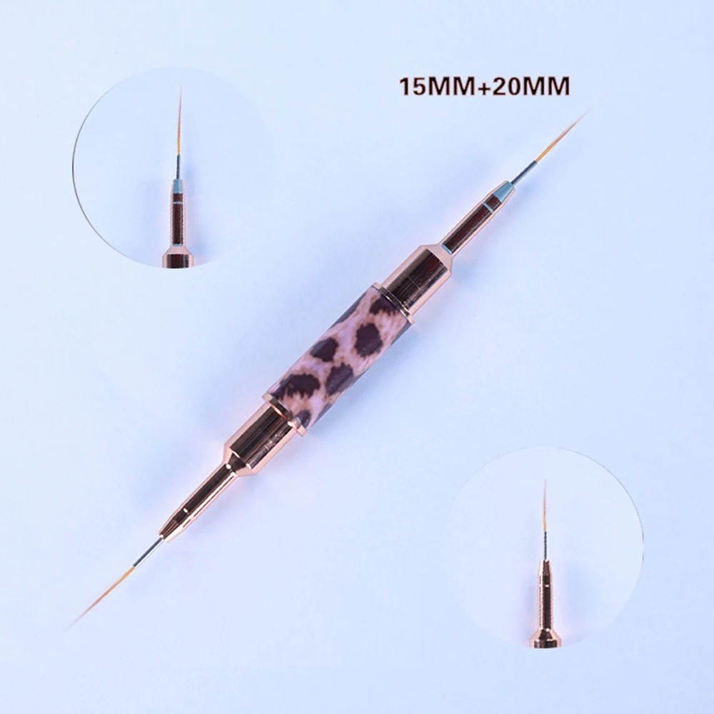Tynd dobbeltsidet neglebørste 15 mm + 20 mm Leopardprint Børste til detaljeret nail art tegning af linjer og dekorationer til neglemanikyr