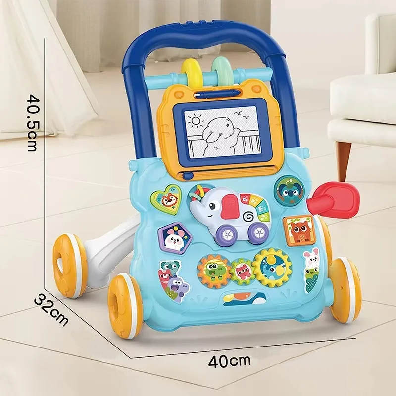 Uddannelsesmæssig børne gåvogn med tegnebræt og musik 40x32x40,5 cm Hjælpemiddel til læring af former og udvikling af finmotorik hos småbørn
