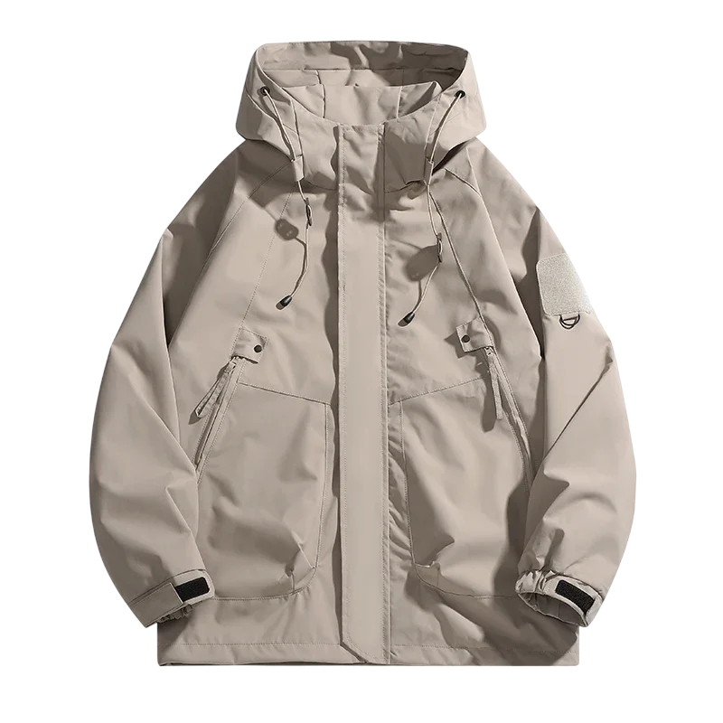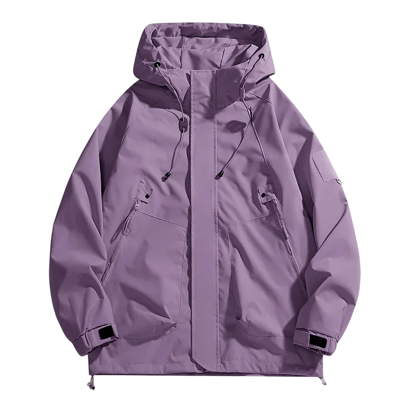 Denne jakke er det perfekte valg for alle, der har brug for pålidelig beskyttelse mod vejret og samtidig søger modetøj af høj kvalitet. Dens lette materiale, praktiske design og stilfulde udseende gør den til den ideelle følgesvend på rejser, i byen og i naturen. Vandtæthed, hætte og funktionelle lommer sikrer, at du altid er klar til uventede vejrfænomener.