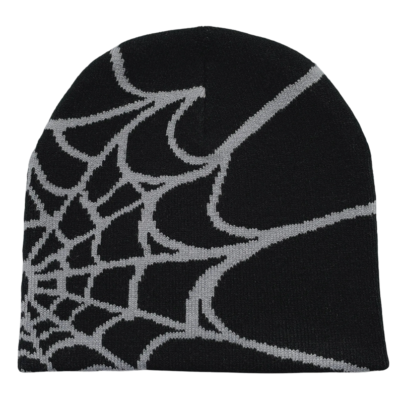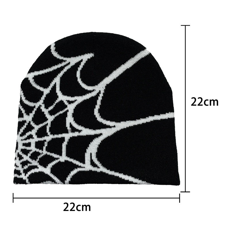 Universel strikket hue 22 × 22 cm Til mænd og kvinder Y2K stil med edderkoppemotiv Modehue Four Seasons til udendørs sport og ridning