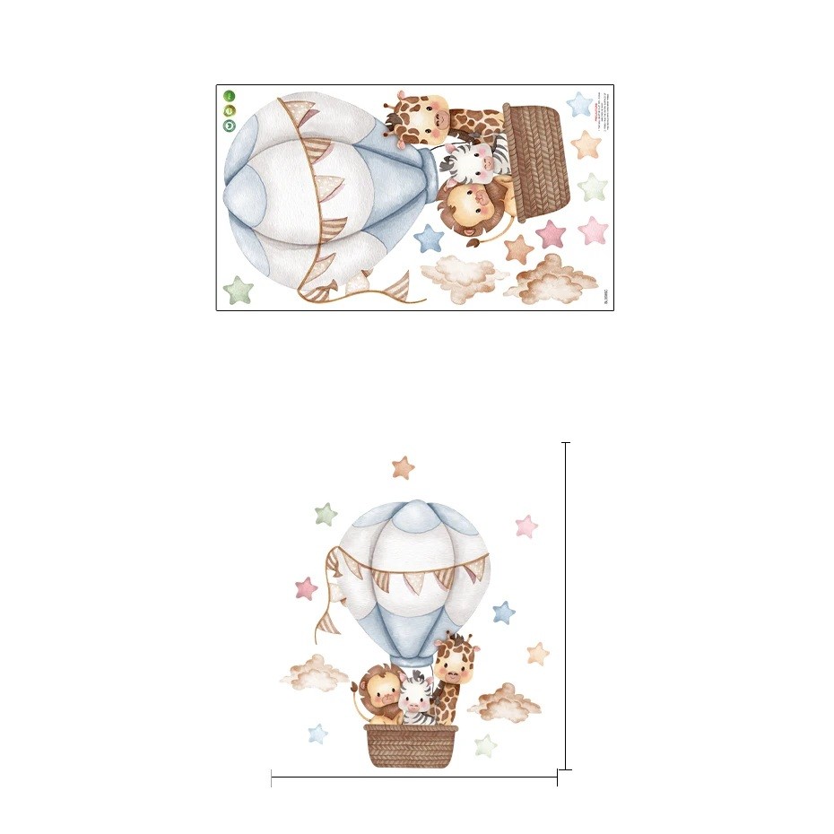 Klistermærket er det ideelle valg for forældre, der ønsker hurtigt og nemt at opfriske børneværelset uden komplicerede byggeændringer. Takket være de universelle farver og den fine stil passer det til forskellige typer dekorationer og indretning. Mat overflade giver motivet et elegant udseende og eliminerer uønskede reflekser. De søde dyr i ballonen virker venlige og bringer positiv energi ind i rummet, hvilket får børnene til at føle sig komfortable og sikre. Hvis du leder efter en dekoration, der bringer farver, legesyge og glæde ind i rummet, er dette klistermærke den rigtige løsning.