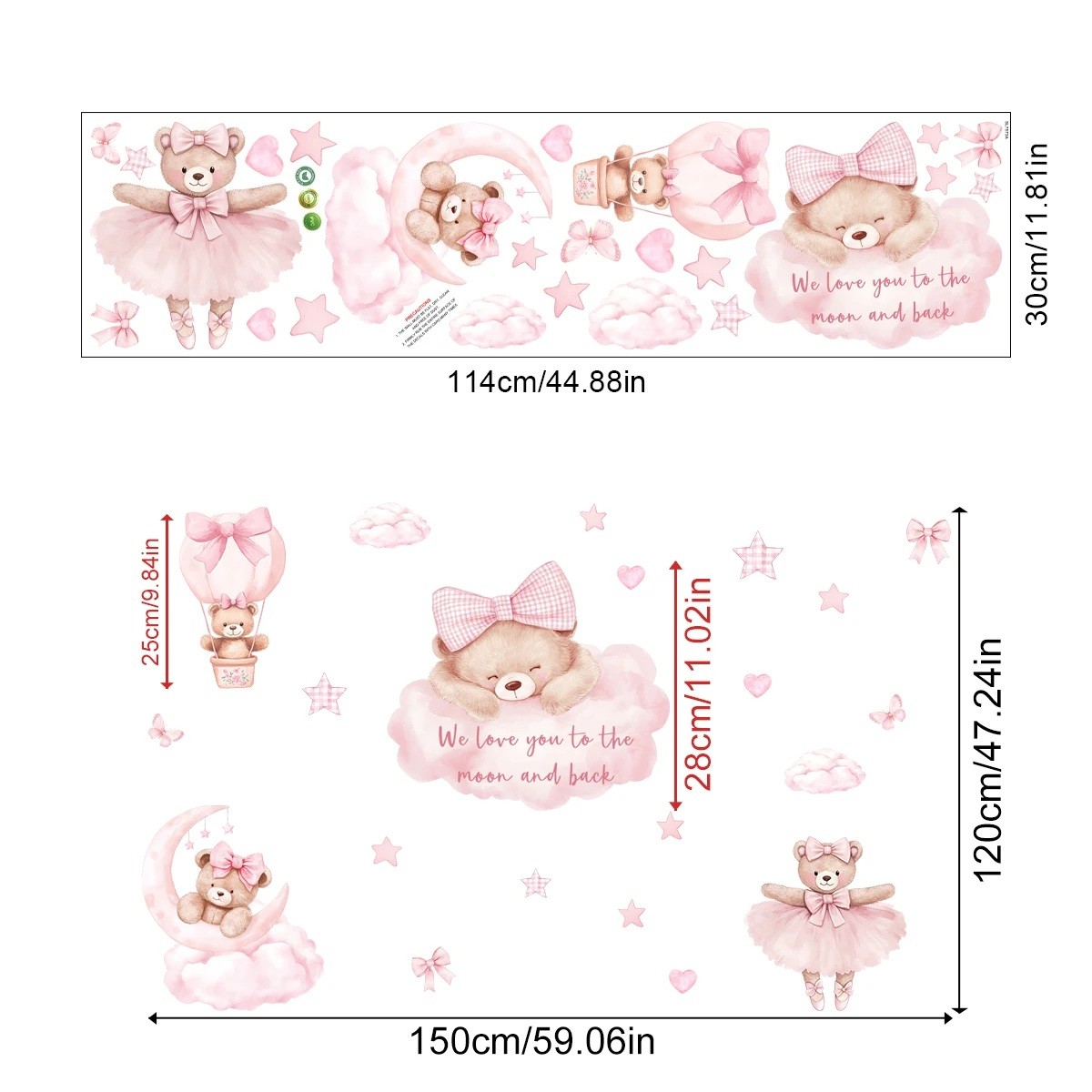 Forside Forside Hjem og husholdning Dekoration og boligtilbehør Tapet og klistermærker Dekorative klistermærker Vægsætte 150 x 120 cm Bamse på lyserød sky og ballon Gennemsigtig mat vinyl Dekoration til børneværelset Stor vægdekoration