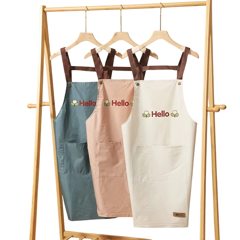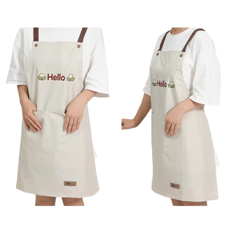 Vandtæt køkkenforklæde 71 x 68 cm med Hello tryk Japansk stil Stor lomme Madlavning Bagning Praktisk komfortabelt forklæde