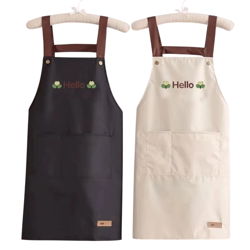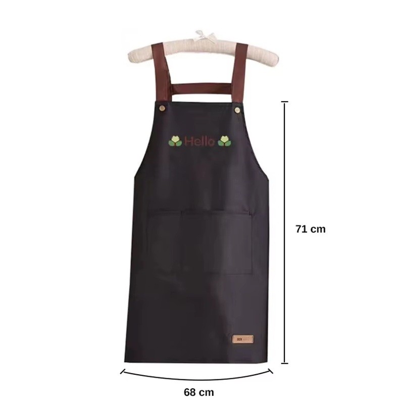Er du på udkig efter et praktisk, stilfuldt og komfortabelt forklæde til daglig madlavning eller weekendbagning? Dette vandtætte køkkenforklæde med Hello tryk er det ideelle valg til ethvert moderne køkken. Det fanger ikke kun med sit minimalistiske japanske design, men også med funktionaliteten, som gør det til din uundgåelige hjælper. Forklædet er lavet af kvalitetsmateriale, der er behageligt at have på, vandtæt og pletresistent og nemt at rengøre. Den praktiske store lomme på forsiden giver rigelig plads til opbevaring af køkkenredskaber, klude eller opskrifter.