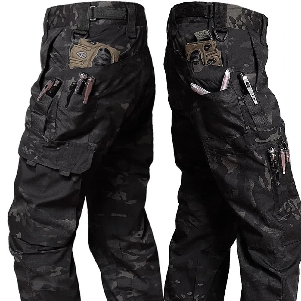 Vandtætte taktiske bukser til mænd, slidstærke bukser med flere lommer, cargobukser, udendørsbukser, ensartet materiale, funktionelt herretøj