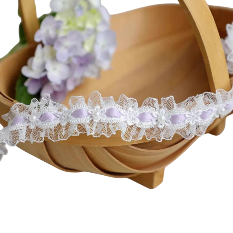Volangspidskantbånd med perler 91 cm Bredde 3,5 cm Polyesterkant med farvet bånd til syning dekoration af tøj